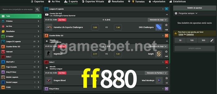 O ff880 oferece uma grande seleção de opções de apostas em e-sports com probabilidades competitivas